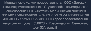 Медицинский центр лечения зависимостей Екатерины Стукаловой в Углегорске предлагает избавление от алкогольной и наркотической зависимости. Услуги врача необходимы при получении прав, поступлении в учебные заведения, на службу, а также во время прохождения освидетельствования. Записаться на прием к врачу можно по телефону или на официальном сайте.